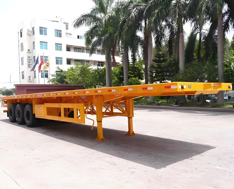 Grote Afbeelding :  50 ton 3 as Container Flatbed Truck Semi-trailers met Q345B staal nuttige lading op maat